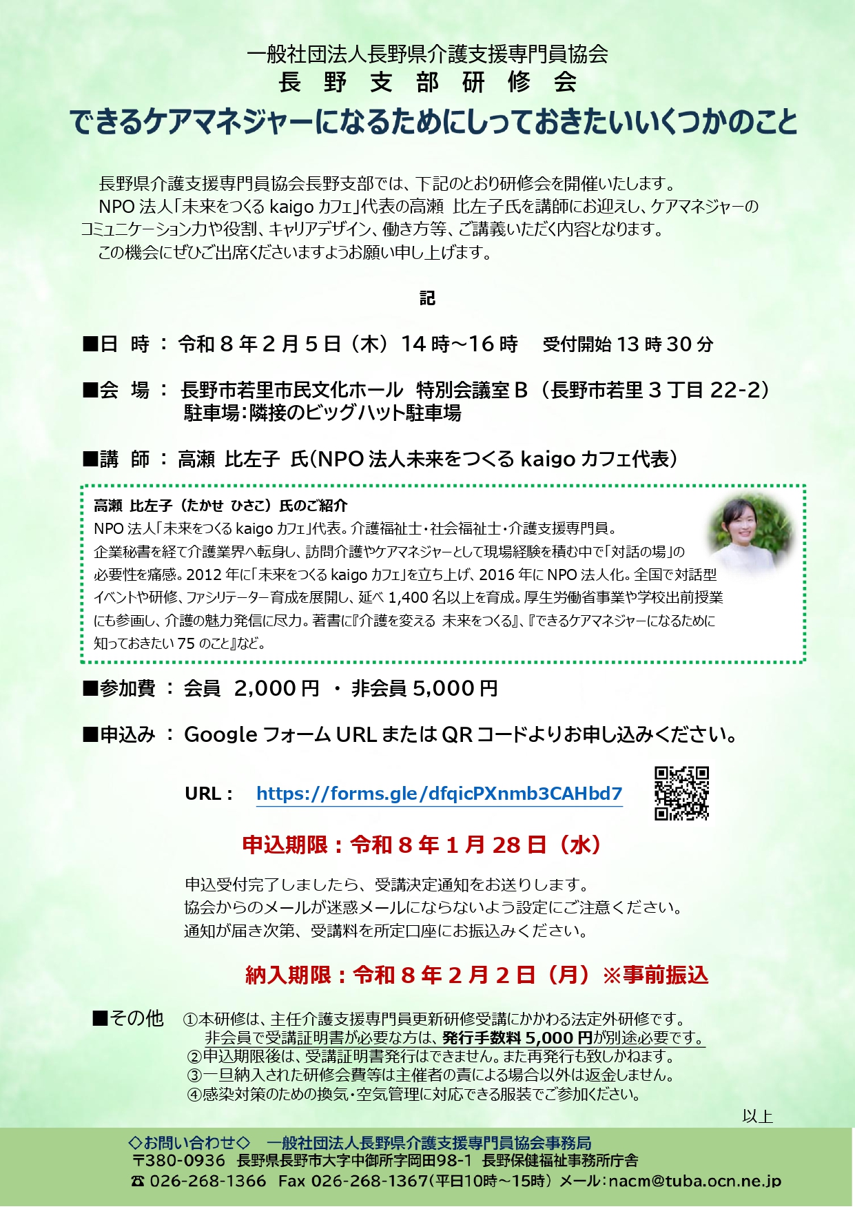 R8.2月5日 長野支部研修会のご案内(主任更新研修に係る法定外研修)