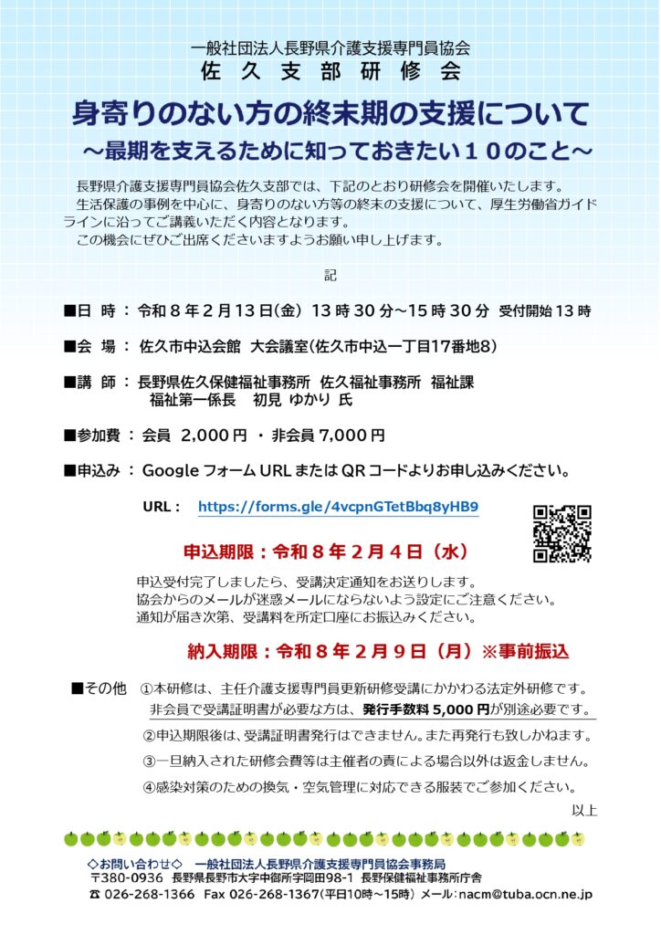 R8.2月13日 佐久支部研修会のご案内(主任更新研修に係る法定外研修)